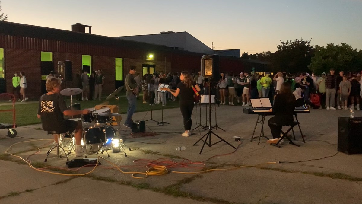 Student rock band Charlie’s Angels provided some great grooves to entertain the crowd waiting for the bonfire at Harborfields High School on Sept. 24.