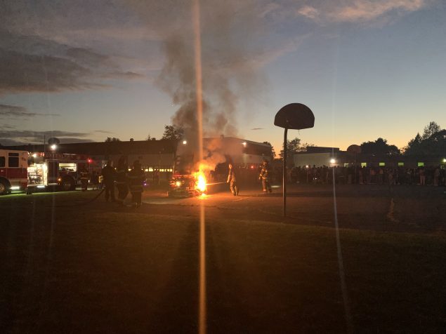 The Greenlawn Fire Department presented an exciting show of flames at the Harborfields High School bonfire on Sept. 24.