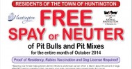 In an effort to stem the pit bull population that is so prevalent in Huntington and throughout Long Island shelters, free spay and neuter is being offered at the League for Animal Protection. See details below.